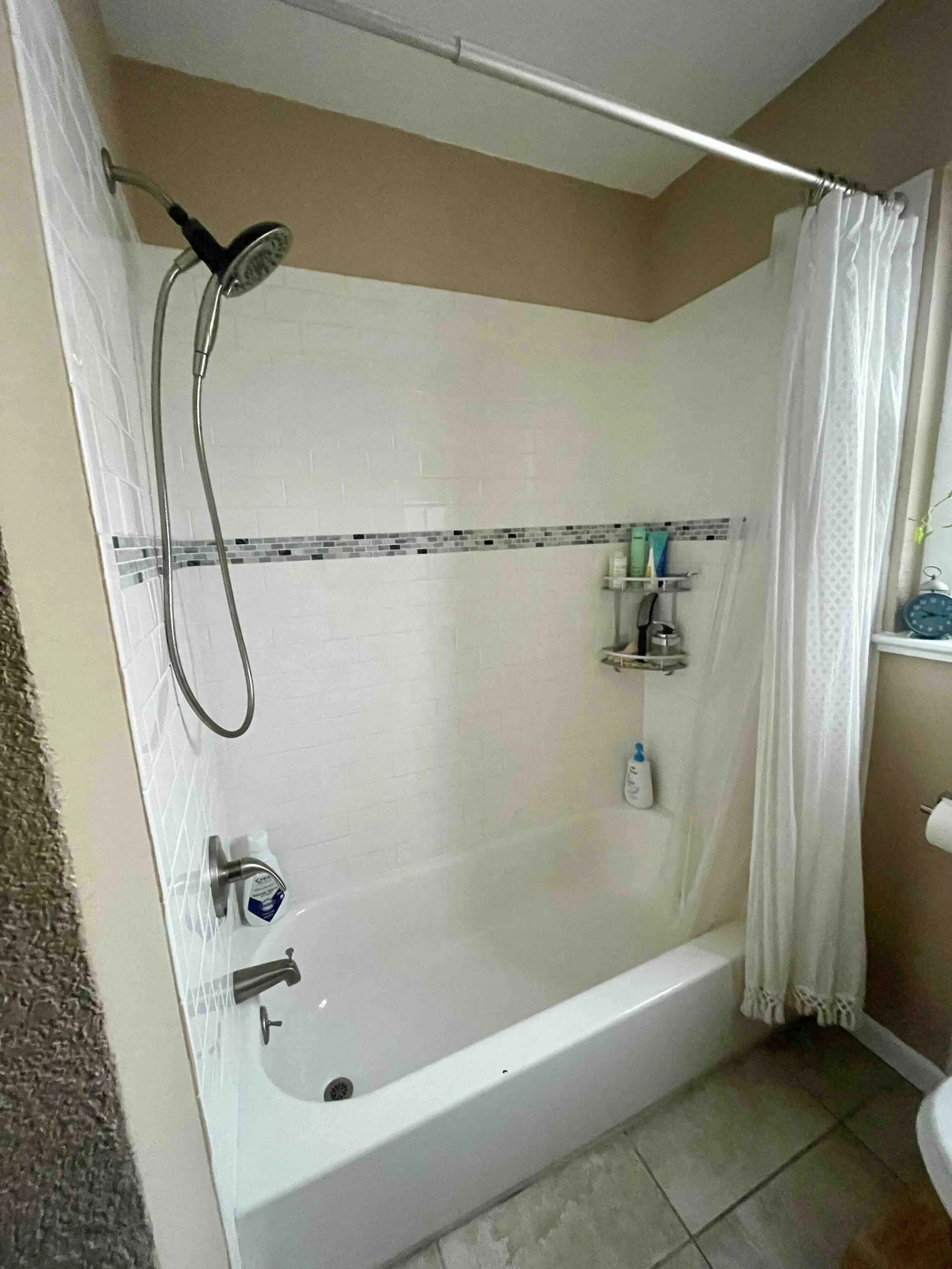 The homeowner chose to keep the existing tub and shower surround, which allowed the budget to stretch further in other areas—including new cabinets, a sliding shower door, and quality hardware upgrades that elevated the entire space.