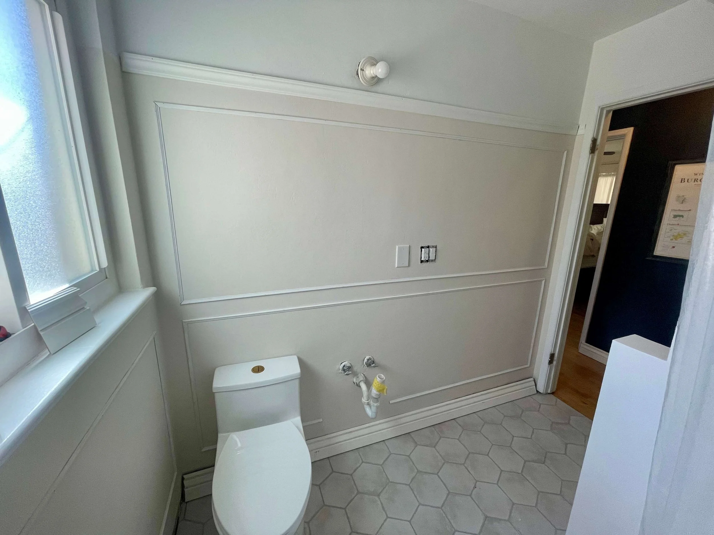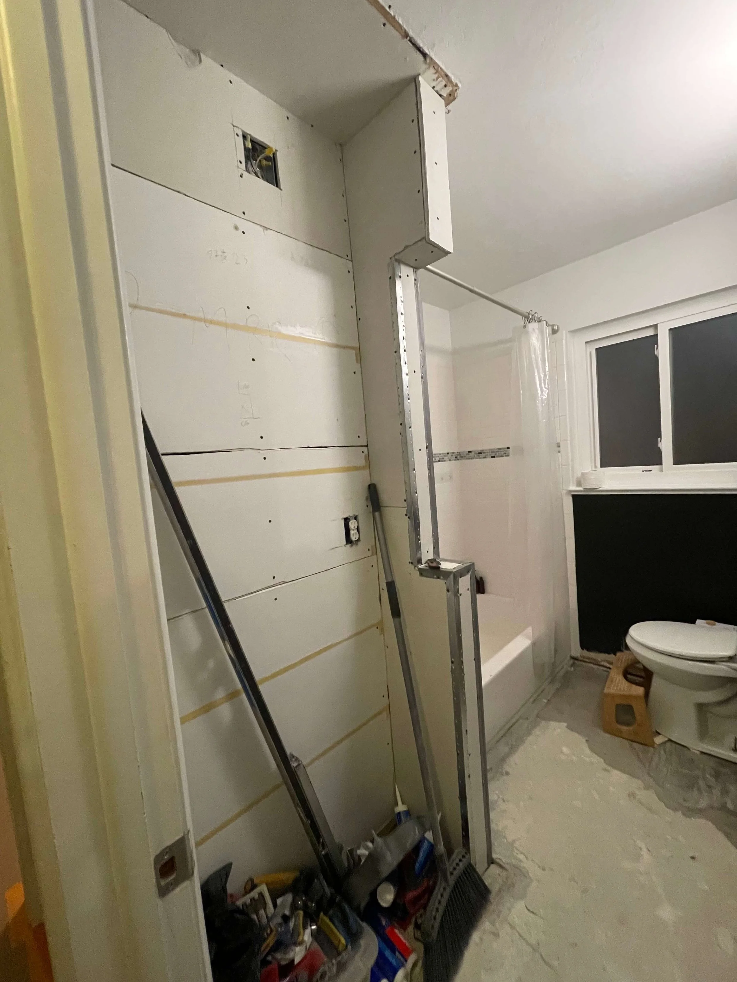 Sometimes the most meaningful transformation lies beneath the surface. Before any finishes could be applied, the walls and ceilings were scraped and smoothed with joint compound to eliminate the heavy orange peel texture. This subtle but essential step gave the space a clean, modern canvas.